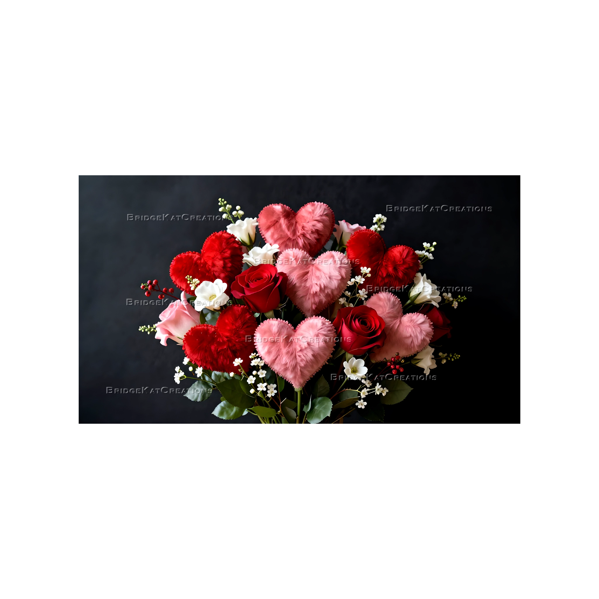 š¶ Pink and red velvet hearts with roses bouquet desktop wallpaper in a 16:9 aspect ratio.