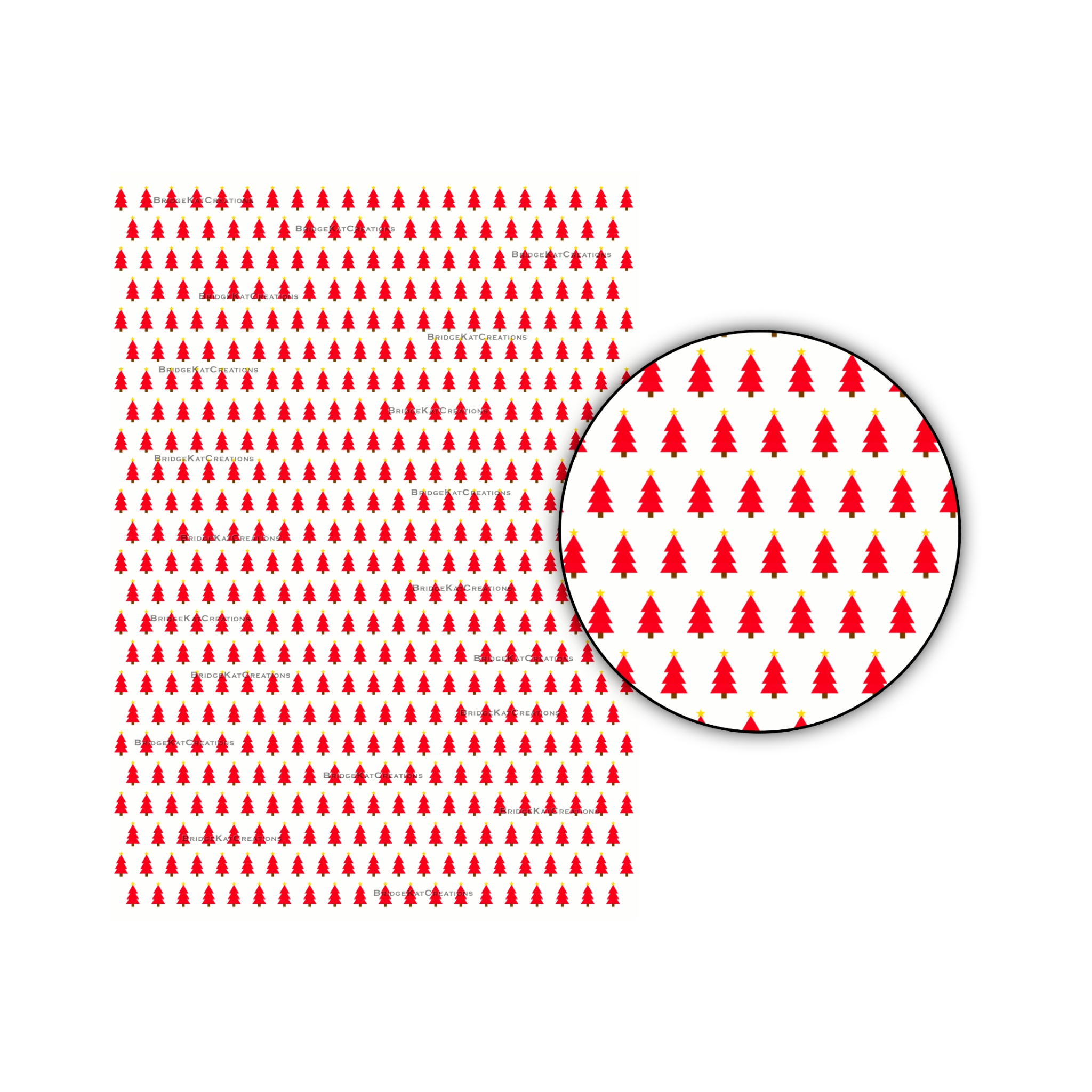 🔶 Digitally created using watercolour brushes in a red and white colour scheme on an A4 canvas, this paper features 1cm tall x 5mm wide red Christmas trees on a white background.