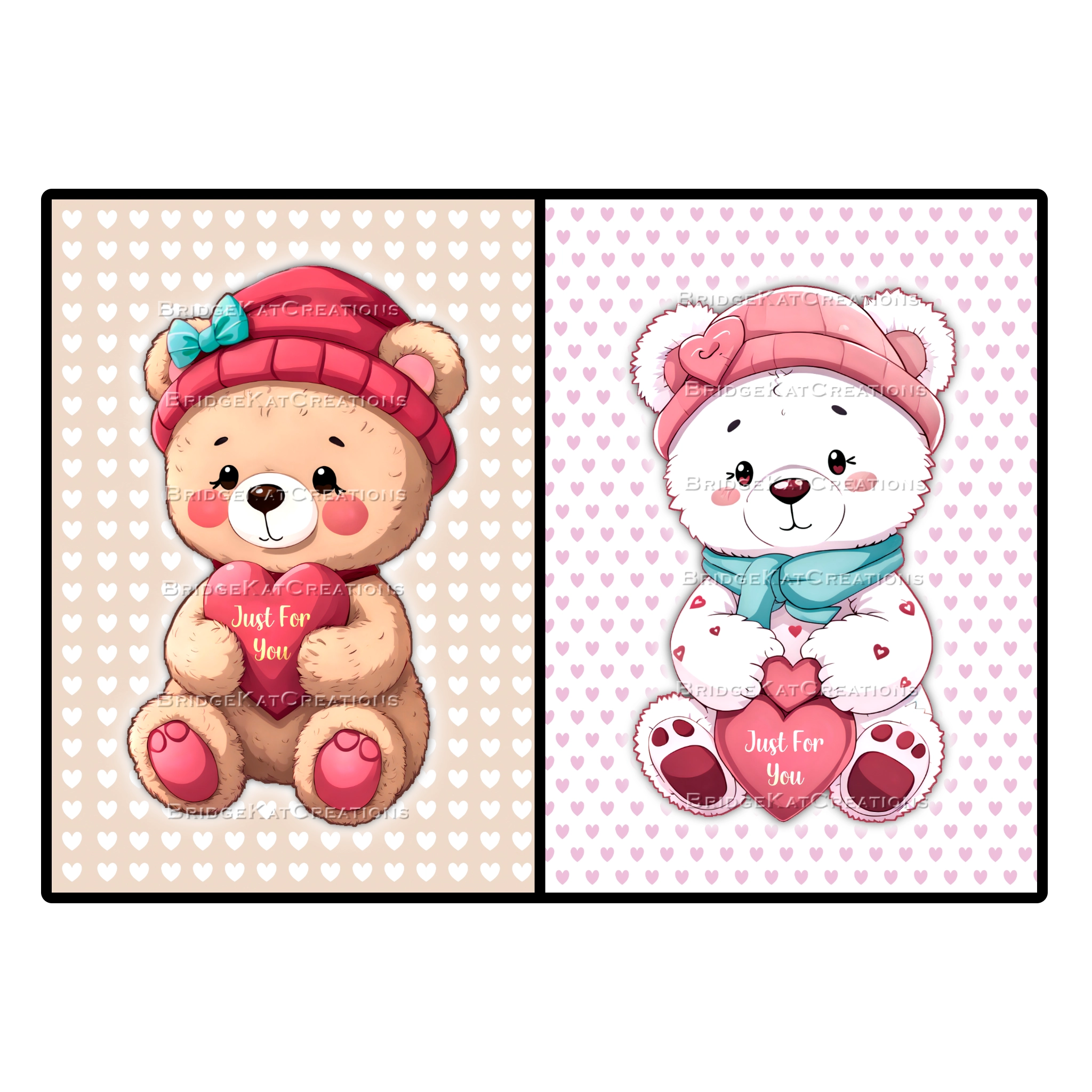 ๐ถ 2 x A6 'Just For You' teddy bear card templates. Can be used for various occasions including birthdays and Valentine's Day.
