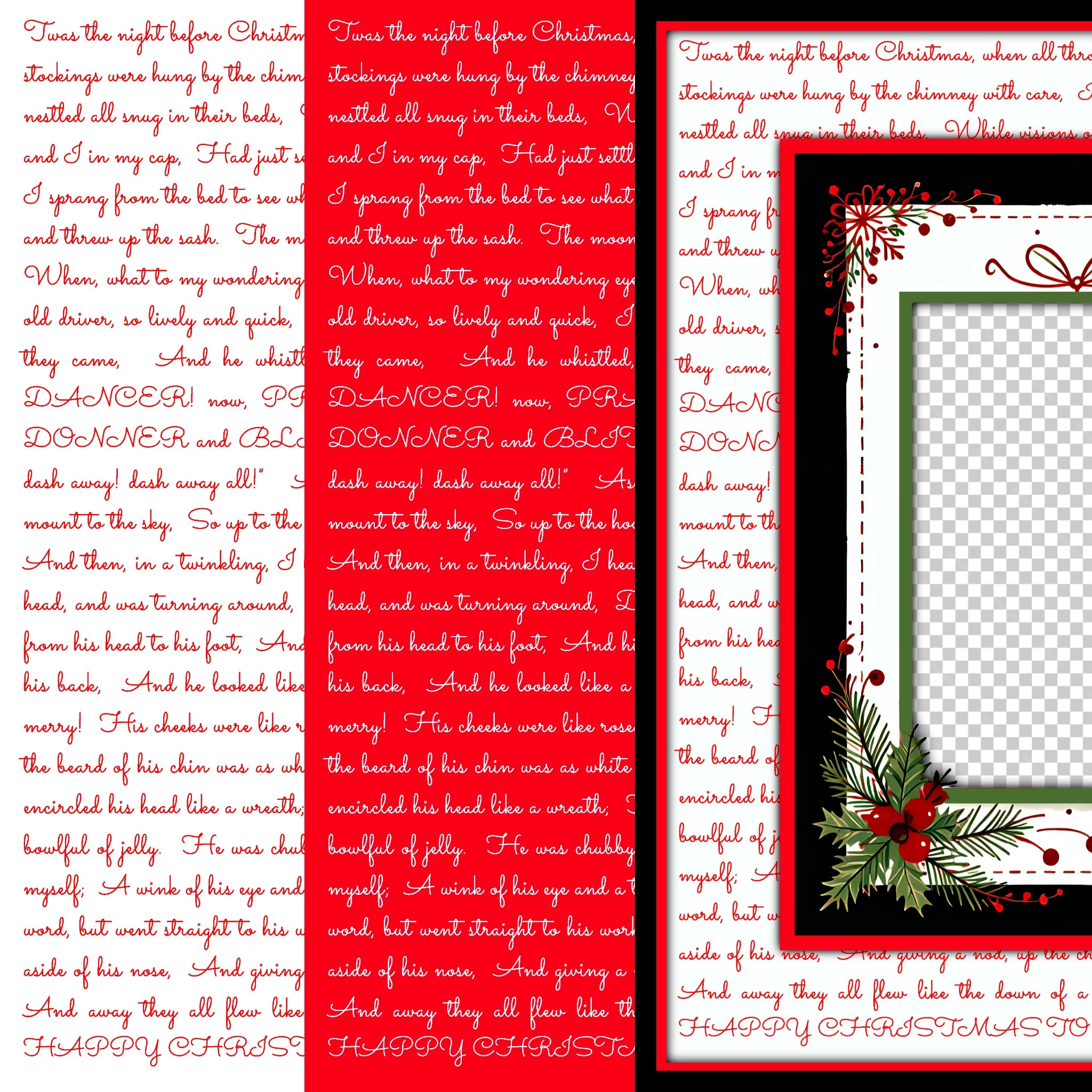 ๐ถ They feature the poem by Clement Clarke Moore, Twas the Night Before Christmas; one paper has red text on a white background, and the other paper has white text on a red background.
