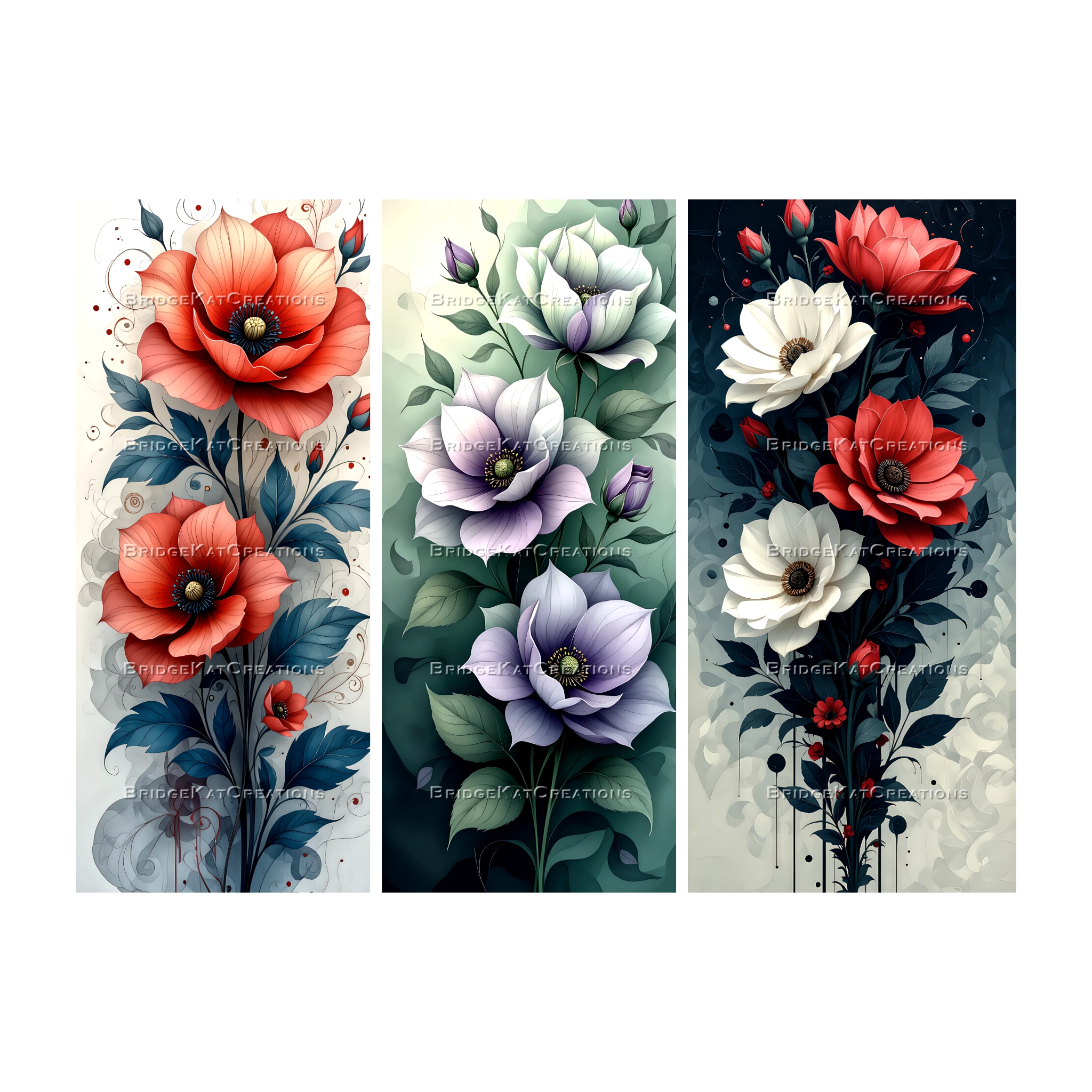 š¶ 3 x Abstract floral 4K phone wallpapers in a 9:19 aspect ratio.