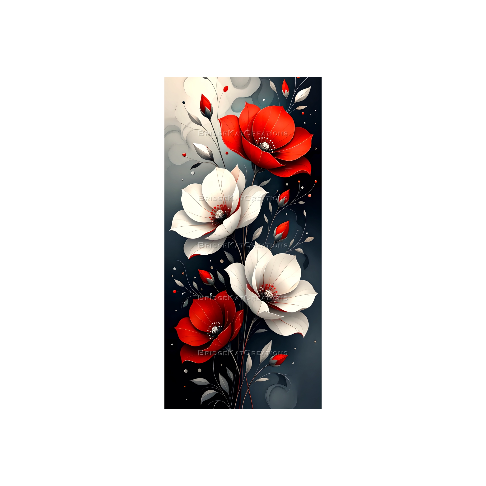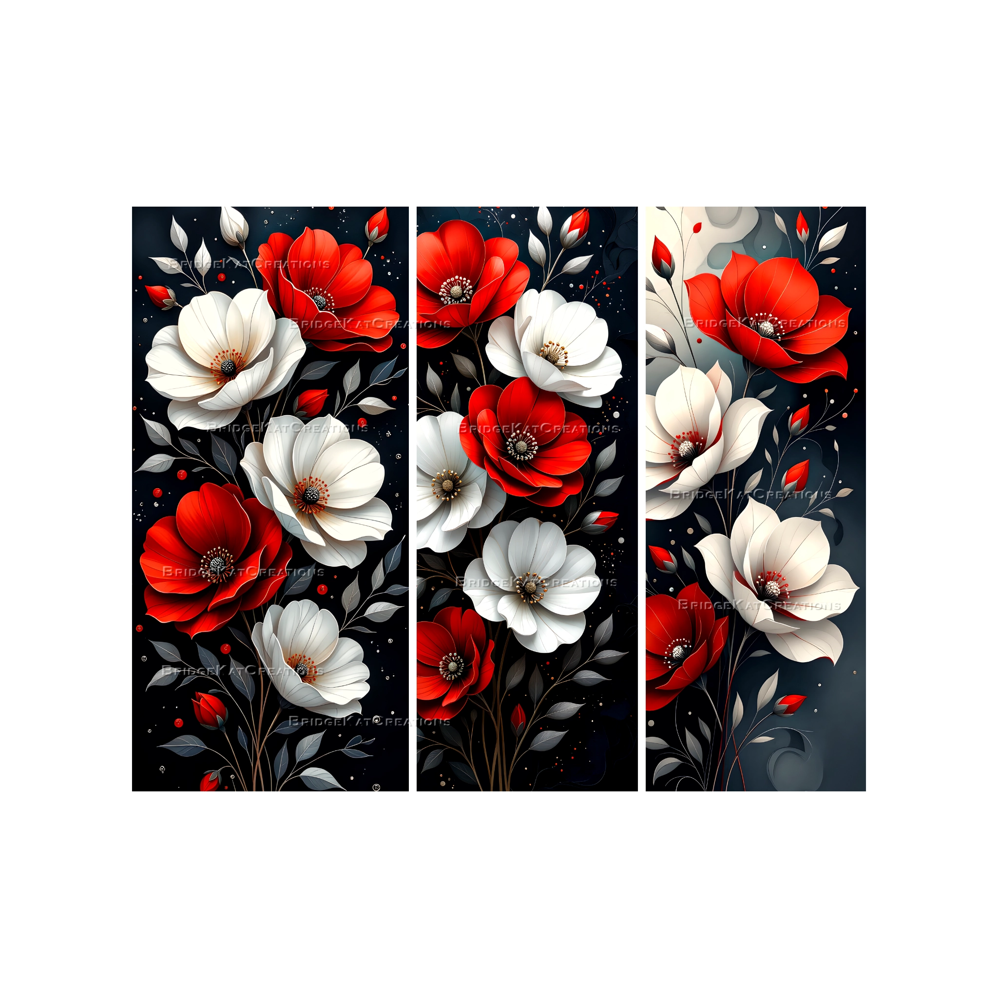 š¶ 3 x Red and white flowers on a black background 4K phone wallpapers in a 9:19 aspect ratio.